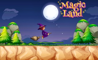 Magic Land is an endless runner game where you play as a wizard who must run through a magical land, collecting coins and avoiding obstacles. The game is played from a side-scrolling perspective, and you can move your character left and right to avoid obstacles. You can also jump to collect coins that are floating in the air. As you collect coins, your score will increase. The game will end if you collide with an obstacle or fall off the edge of the screen.