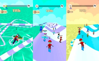 Welcome to Skating Park, where skateboards meet high-speed racing madness! Dive into a world of adrenaline-fueled stunts and fierce competition as you shred through gravity-defying tracks. Master insane ramps, outmaneuver opponents, and conquer the leaderboard. Feel the thrill as you jump off the track, taking daring shortcuts to gain the edge. Get ready to grind and glide your way to victory!- Move the player left/right by dragging the mouse left/right.- Jump off the track and find another track for a shortcut- Throw enemies off the track by hitting them1. Dynamic Track Design: Race through thrilling and ever-changing skateboarding tracks filled with ramps, loops, and challenging obstacles.2. Intuitive Controls: Seamlessly control your skater by dragging the mouse left or right for precise maneuvering and jumps.3. Shortcut Opportunities: Explore the environment and discover hidden shortcuts by jumping off the track, allowing you to gain an edge over your opponents.4. Strategic Gameplay: Use tactical moves to throw opponents off the track and clear your path to victory.5. Progressive Unlockables: Unlock new skateboards, characters, and earn rewards.